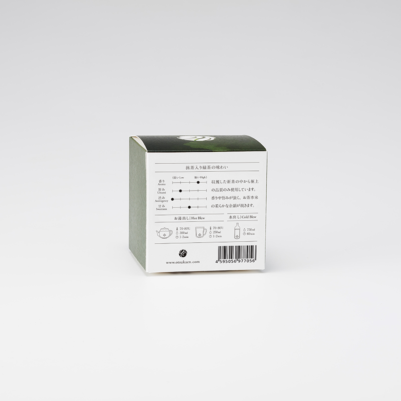 深蒸し茶にお抹茶をブレンドしました。 急須がなくとも、どなたでもお手軽に 本格的なお茶を飲んでいただけます。