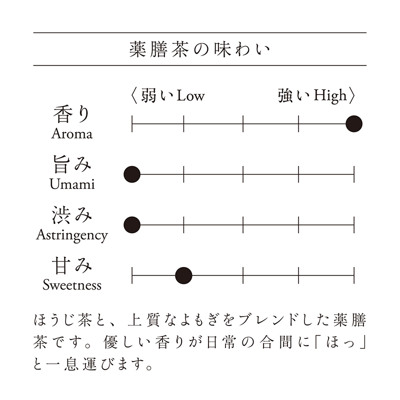 ほうじ茶と、上質なよもぎをブレンドした薬膳茶です。